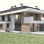 .dom_21028 dom_21028_koncepcja Tym razem dom w standardzie energooszczędnym na wąskiej działce. .podstawowe parametry budynku Powierzchnia użytkowa ok. 220 m2 Wysokość budynku ok. 7,60 m Kąt dachu 5 st.